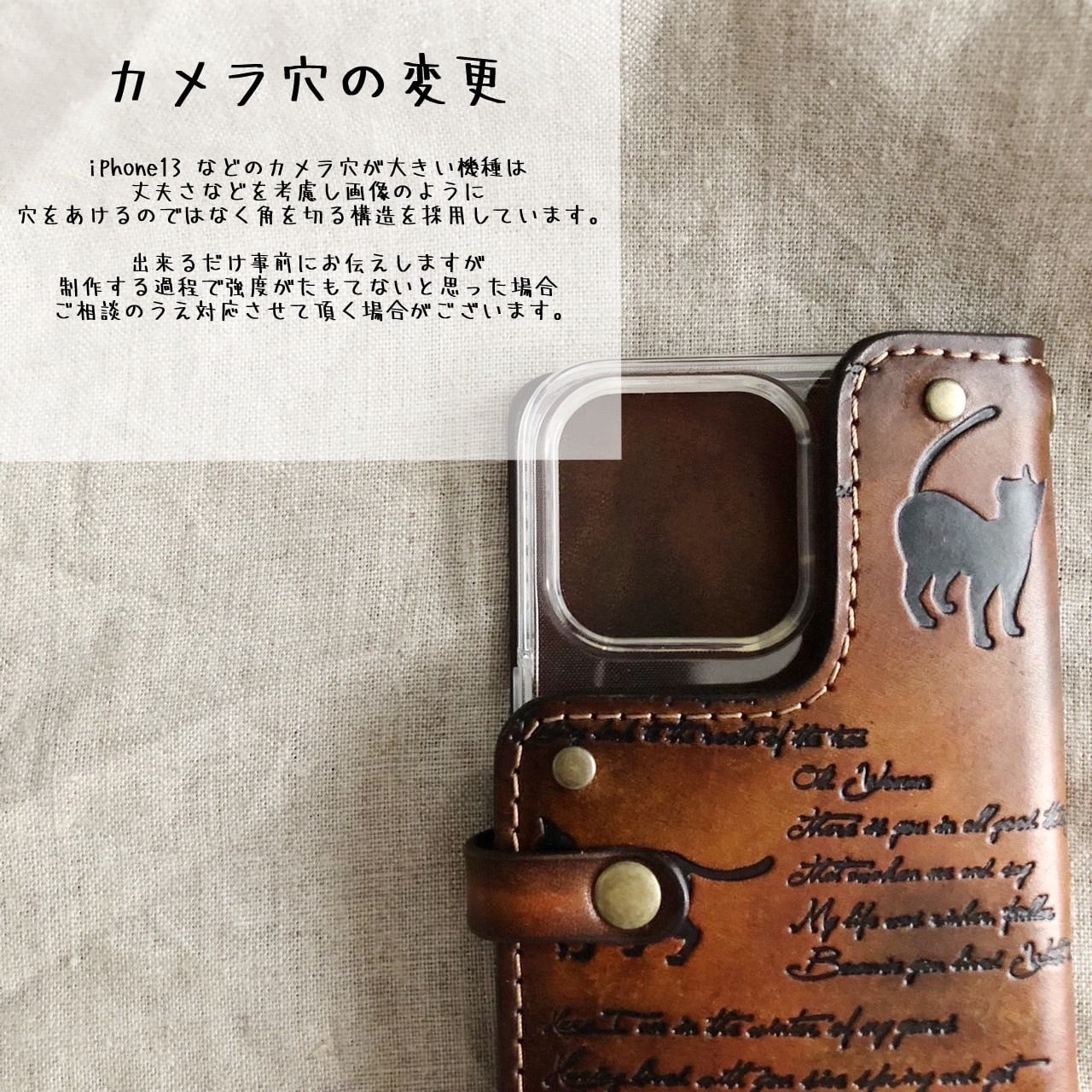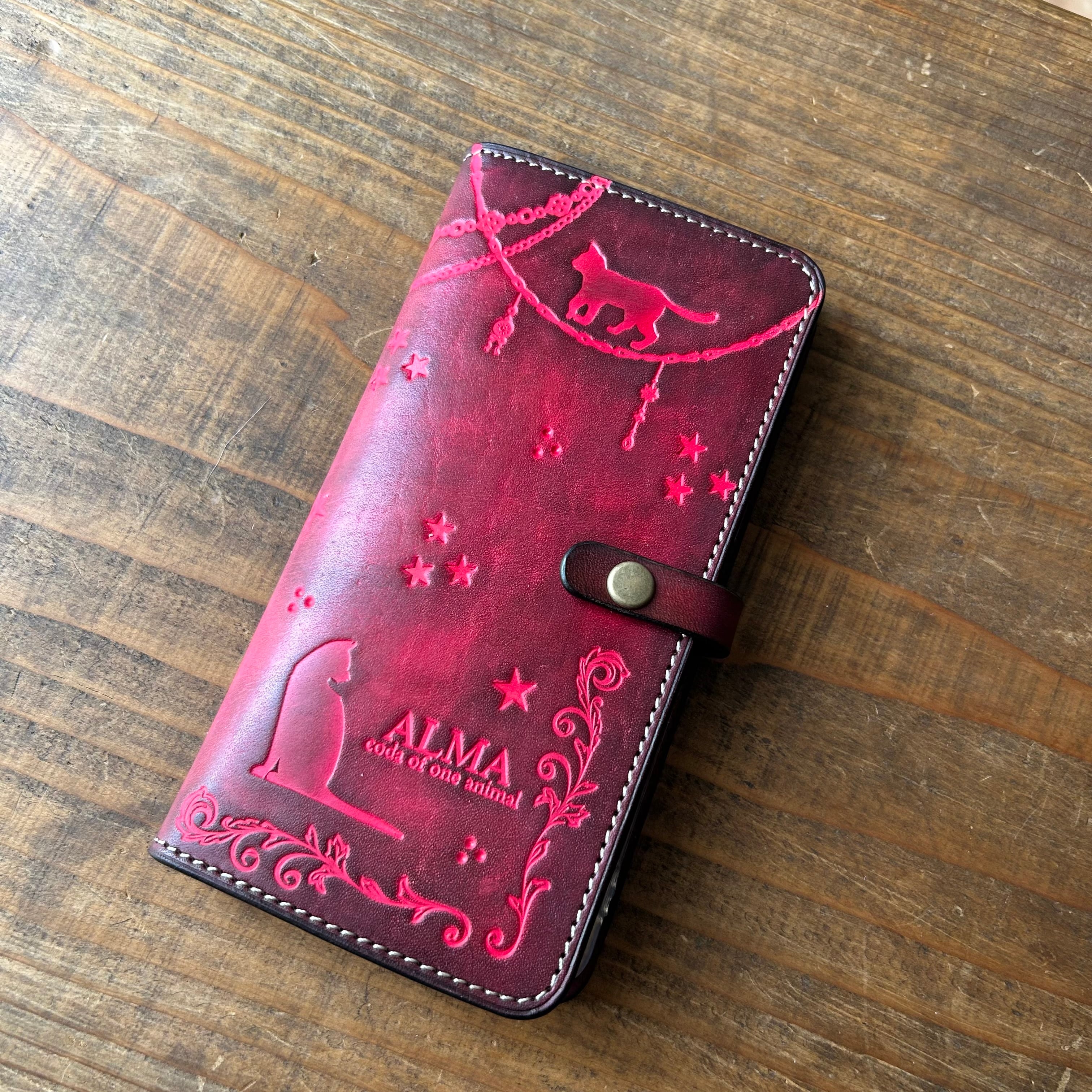 ーーーーーーーーーーーーーーーーーーーー こちらの商品は、 入金確認後の受注制作になります。 制作に1ヶ月程お時間を頂いております。 「この日までに手元に欲しい」などは対応しかねますので、申し訳ありませんがのんびりと待って頂けると助かります。どうぞ宜しくお願い致します。 ーーーーーーーーーーーーーーーーーーーー 星いっぱいの世界で遊ぶ猫ちゃん。 綺麗な夜空の世界を革で表現しました。 デザインから染色、裁断、縫製まですべて、ひとつひとつ手作業で制作した手帳型の本革スマホケースになります。 【注意書き】 こちらの商品はご購入される前に、メッセージにてiPhoneまたはAndroidの機種の種類を必ずお知らせ下さい。場合によっては制作ができない機種もございますので、ご購入前にご確認をお願い致します。 ●本革(牛革) ●size iPhone/Android各種 ーーーーーーーーーーーーーーーーーーーーーーーーーーーー 素材 フルタンニンなめし牛革 ※タンニン鞣し(タンニンなめし)は、革を作るための伝統なめし方法の一つです。 タンニンとは、植物の組織に存在するポリフェノールの塗料であり、木の皮や葉、果実などから抽出するタンニンは、革を硬く、耐久性がある素材に変える作用を持っています。 タンニン鞣しは自然素材を使うため、革の風合いや独特な色合いを大切にすることができます。また、環境に優しく、持続可能ななめしの方法としても知られています。 ーーーーーーーーーーーーーーーーーーーーーーーーーーーー 送料、ラッピング無料です。 アルマではあえてプレゼントラッピングはいたしておりません。 お客様との出会いは大切な瞬間です。 これから数年ご使用されることと思いますので、その商品との出会いを大切にしたい彩りたと思いささやかではありますが感謝の気持ちを込めて、丁寧なラッピングを心がけています。 プレゼント用のご購入でもそのままお渡しできるかとおもいます。 ーーーーーーーーーーーーーーーーーーーーーーーーーーーーー 【注意書き】 こちらの商品はご購入される際に、iPhoneまたはAndroidの機種の選択を必ずお願いします! 記載にない機種もほぼ制作可能ですが、記載にないものは場合によっては制作ができない機種もございますので、ご購入前にご確認をお願い致します。 デザインから、染色、裁断、縫製まですべて、 ひとつひとつ手作業で制作しております。 手作業で天然素材を使うため 画像とまったく同じものは不可能です。 それぞれがまたとない唯一無二のものと思って頂ければとおもいます。 革の個性として生きていた時の傷などがあります。 命に敬意を払いなるべく目立たない内側などに活用いたします。 本革ゆえに避けられませんのでご了承ください。 細心の注意をはらっていますが、布地への色移りなどある場合がございます。 白物などは目立たないところでお試しください。