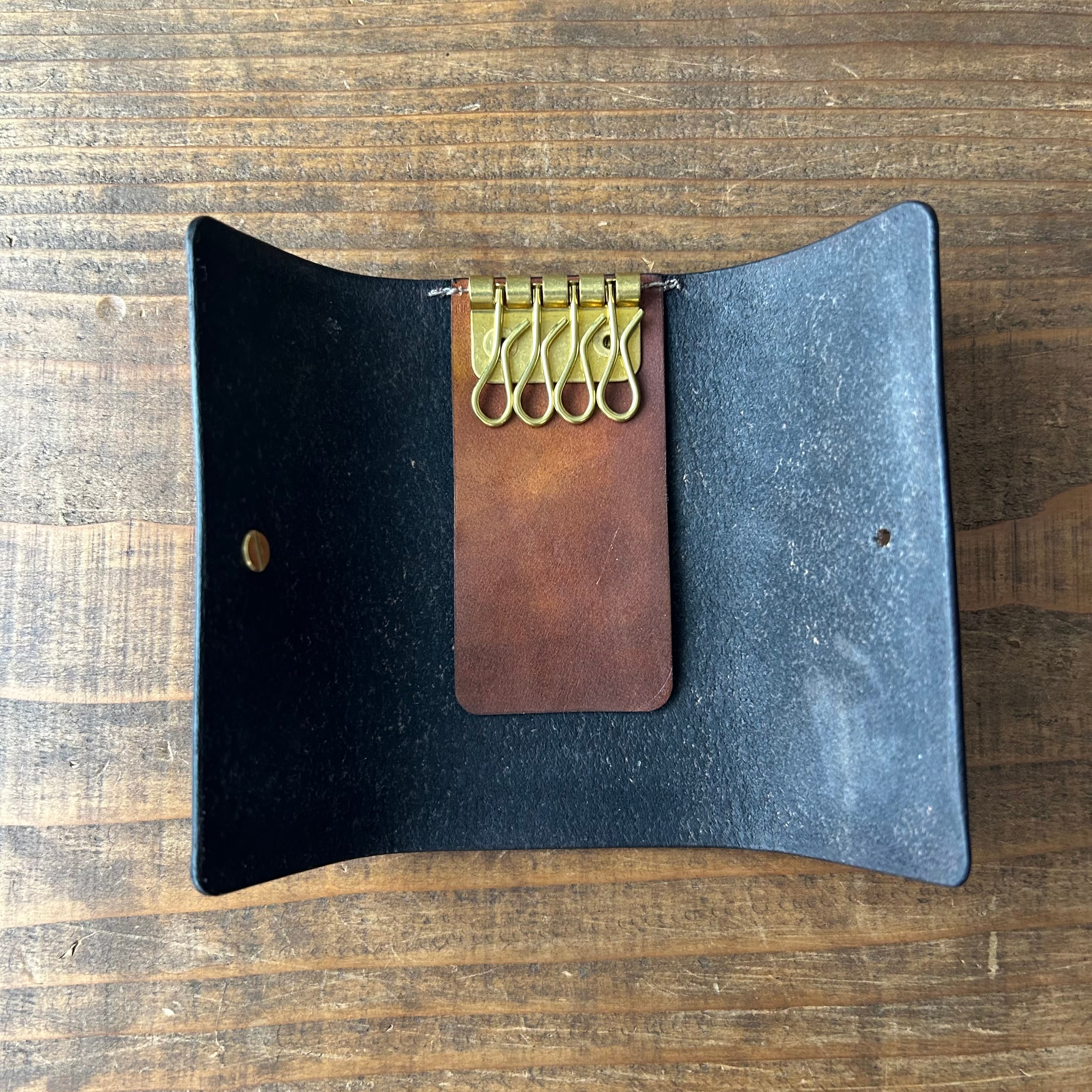 猫ちゃんのワンポイントがさりげなく可愛らしい、本革の4連金具がついたキーケースです。