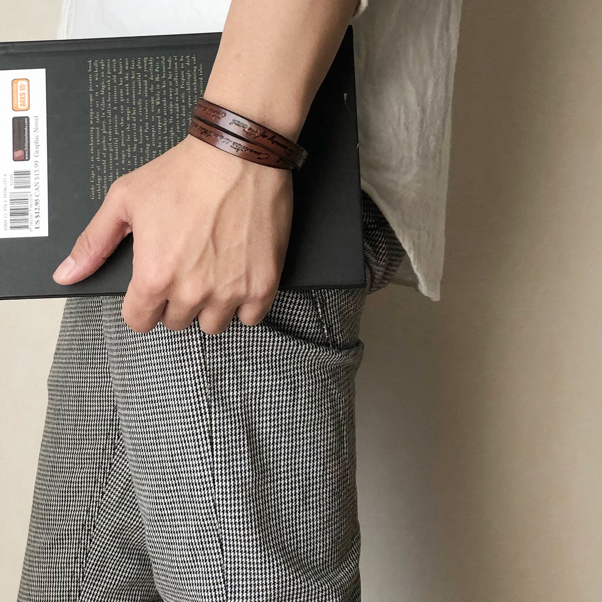英字柄がほどよく施されており、シンプルながらも存在感があるブレスレットに仕上がりました。